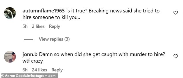 Один из пользователей прокомментировал: «Ну, это не очень хорошо стареет…», а другой сказал: «Это правда? В последних новостях говорят, что она пыталась нанять кого-то, чтобы убить вас…
